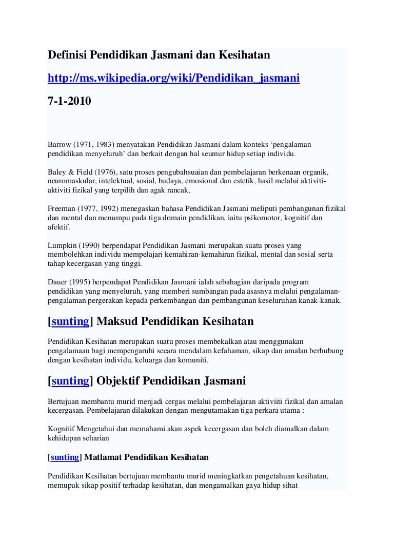 Definisi Pendidikan Jasmani Dan Kesihatan