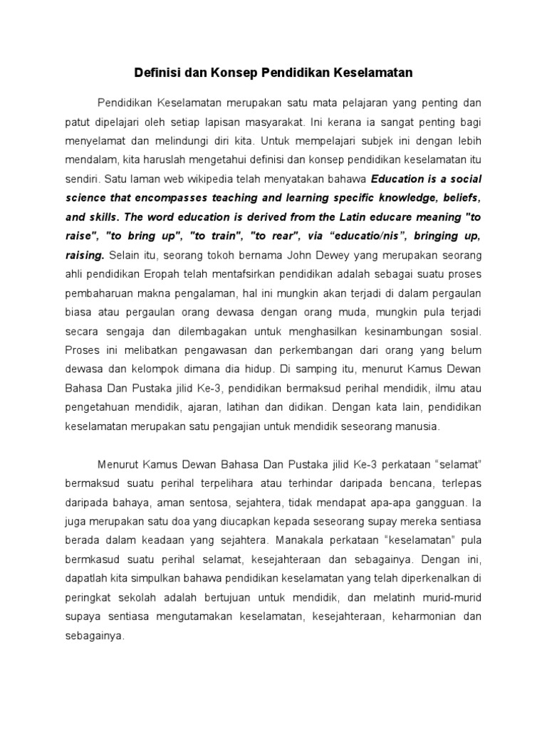 Definisi Dan Konsep Pendidikan Keselamatan Pdf